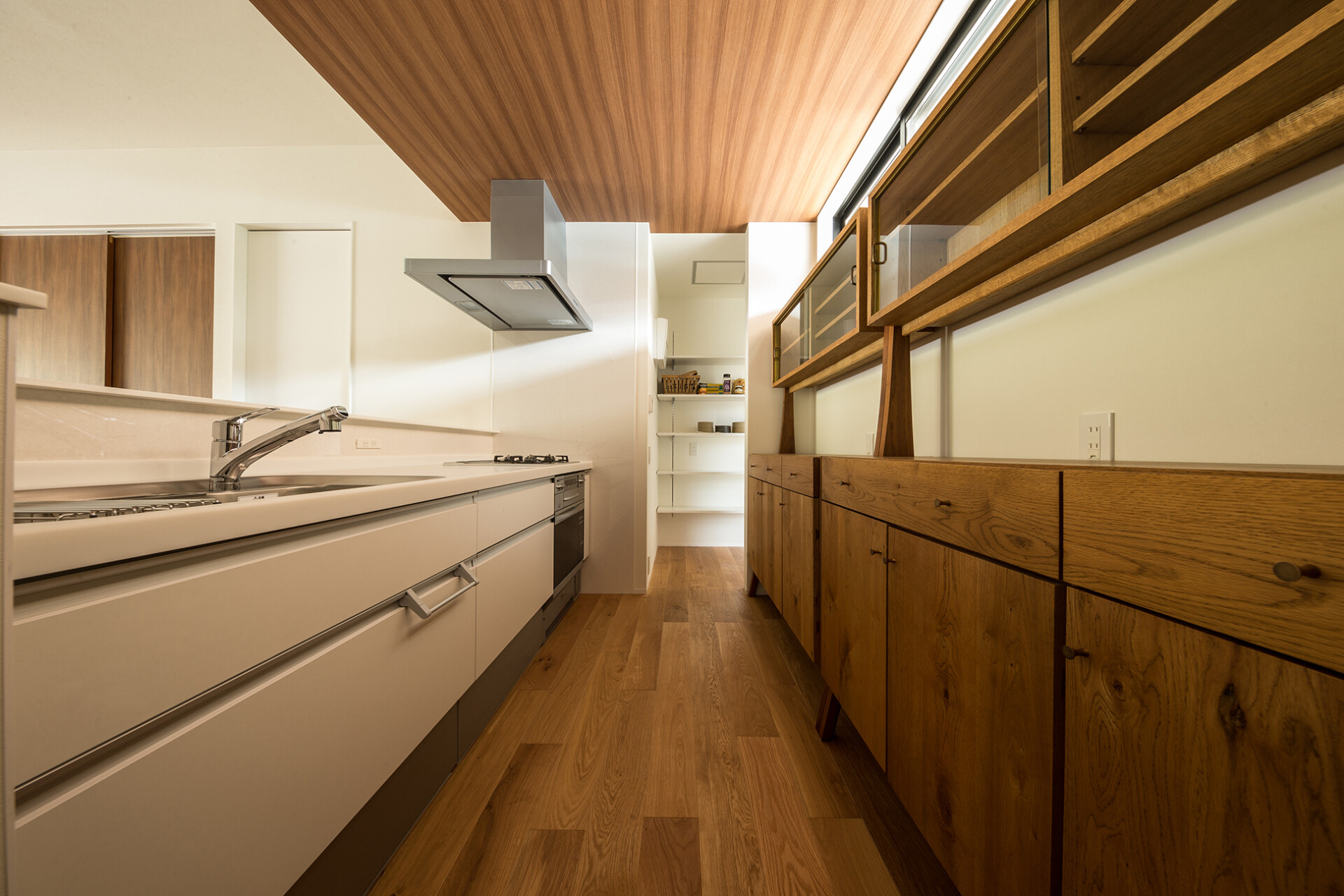 さらに、壁面にも幅10.08cmのスリット窓を設けることにより、壁面からの採光もゼロにはならないうえ、この窓を開ければ心地よい風が通り抜ける。換気そのものは、セントラル換気システムで行われるが、自然の風の清涼感はまた格別だ。