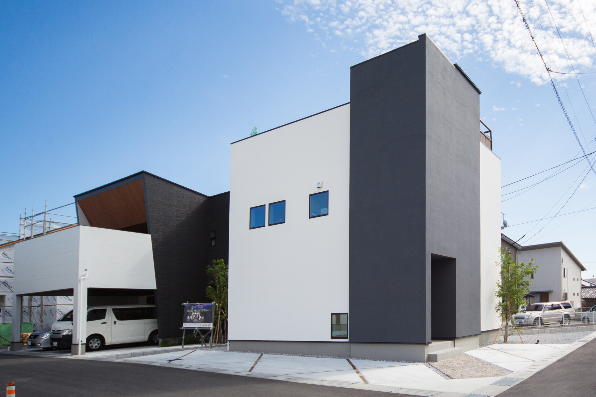 真っ白な塗り壁のオシャレな家