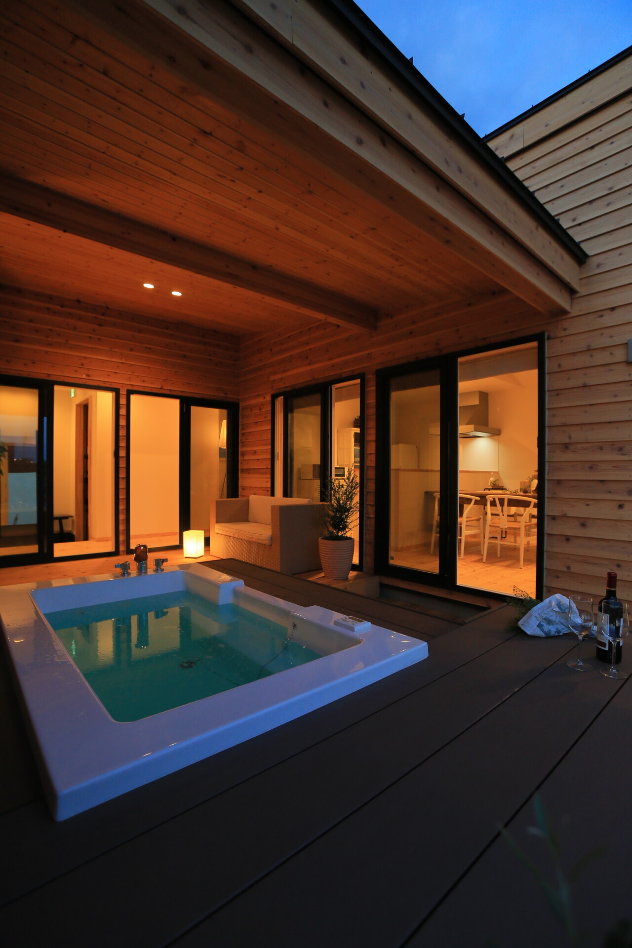 ガラスのバーカウンターが一際目を引くトップデッキは、360°遮るものがなく船の上にいるような体験をもたらしてくれる。