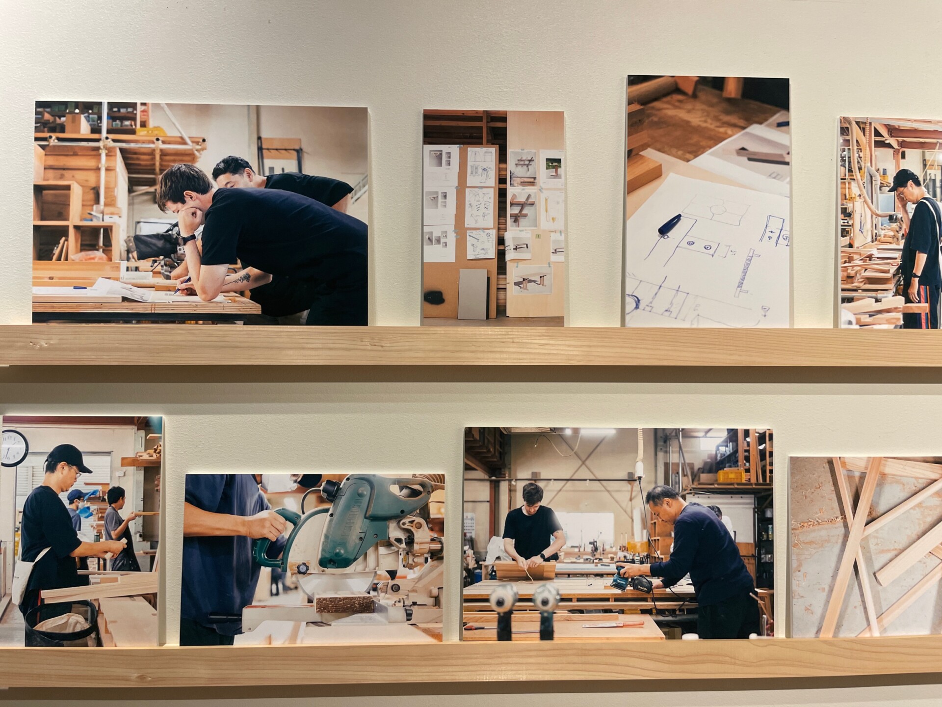 こちらのギャラリーの壁面は大谷石で覆われており、対面には一切の支えがない37枚のガラス窓が続きます。先端部は海に向かって開かれており、そこから実際の水平線を展望することも可能。