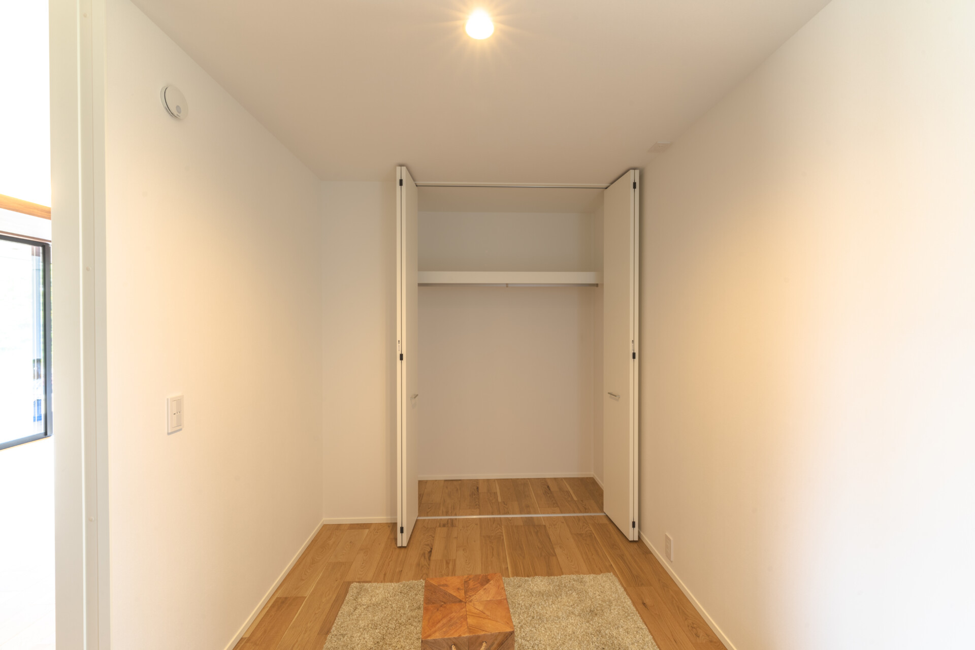 真っ白な壁紙は、Fフォースターを取得したホルムアルデヒドの放射レベルが最も低いものを使用している。オーク材を使用した無垢のフローリングは、落ち着いた空間を演出するとともに環境的な安全性も重視している。