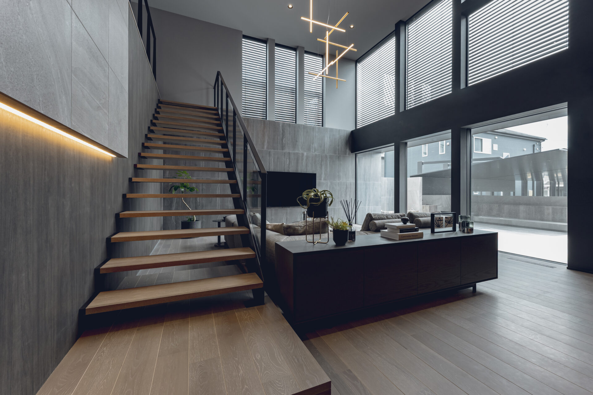 広々とした展示会場には、工業化デザインを切り開いたフランスの建築家ジャン・プルーヴェのプレハブ住宅が設置されていて、それぞれ撮影スタジオや住宅、アトリエの3つのテーマで展示されている。