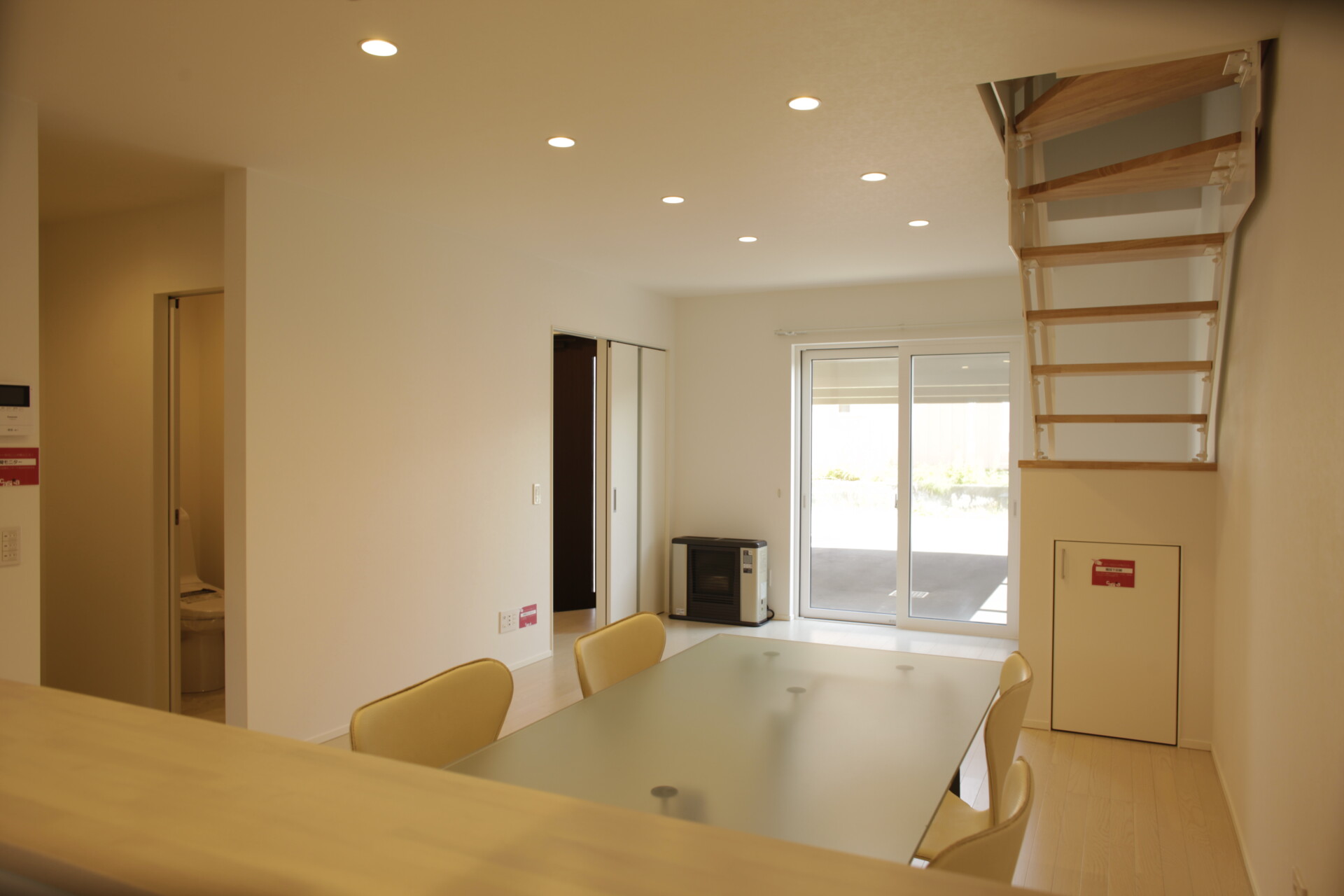 照明も連続する丸いダウンライトでリズム感があり、全体的に白い空間なので照明や自然光が反射して透明感が感じられます。