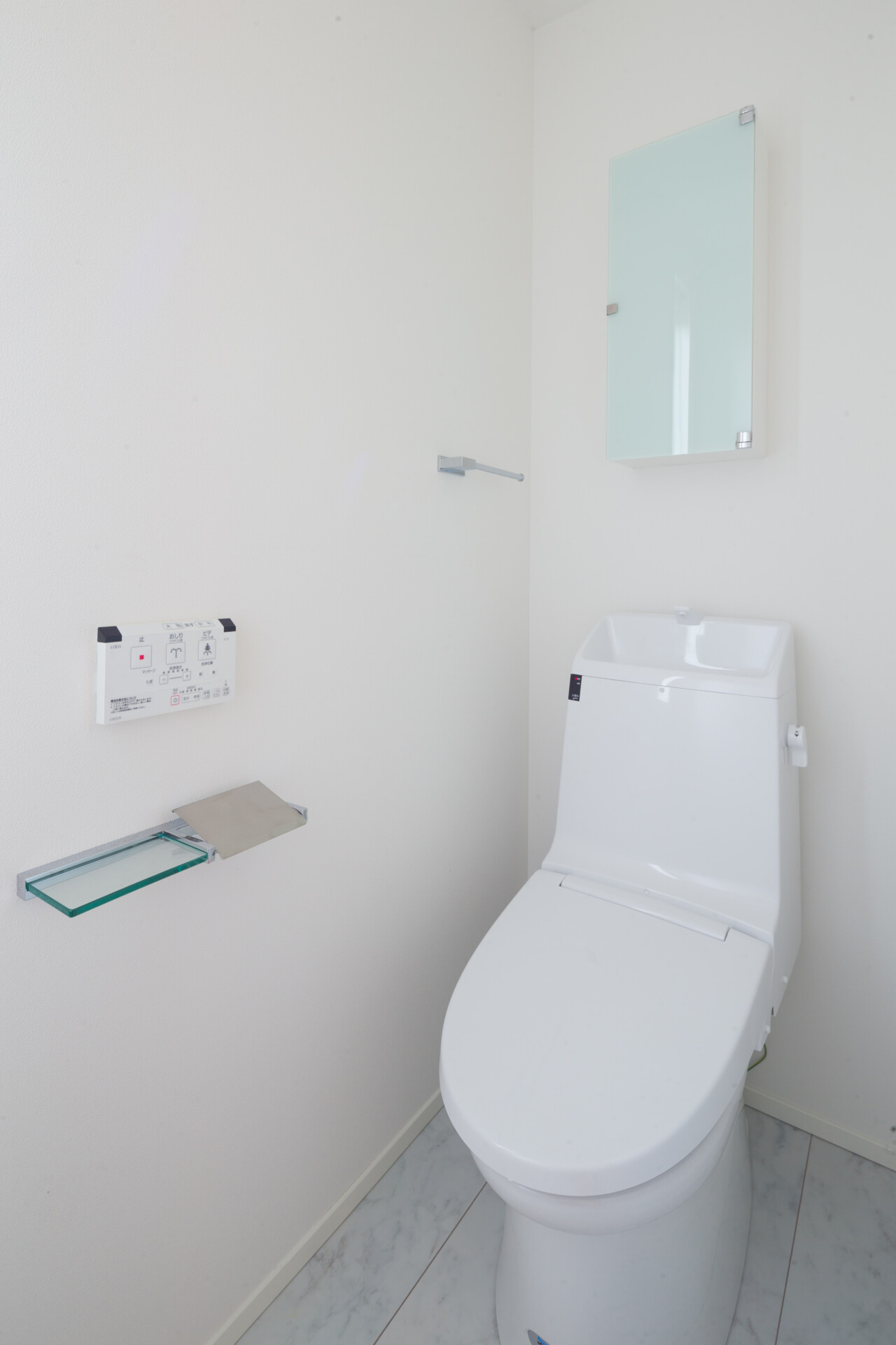 casa carinaのデザインの特徴は、南欧の邸宅をイメージしていること。真っ白な漆喰の壁や、表面材に天然木を取り入れた玄関ドア、焼き物の風合いを生かしたタイルの床材が、ナチュラルさと可愛らしさを醸し出している。また、自然素材を使った棚や金色の取っ手など、室内のインテリアも細かいこだわりが。出会った瞬間に一目ぼれし、長く住んでいるほど愛着がわくデザインになっている。