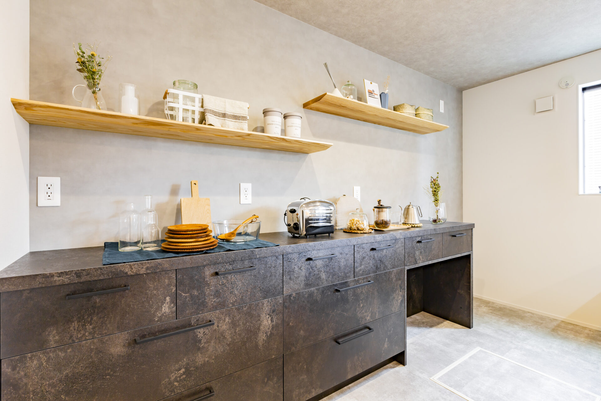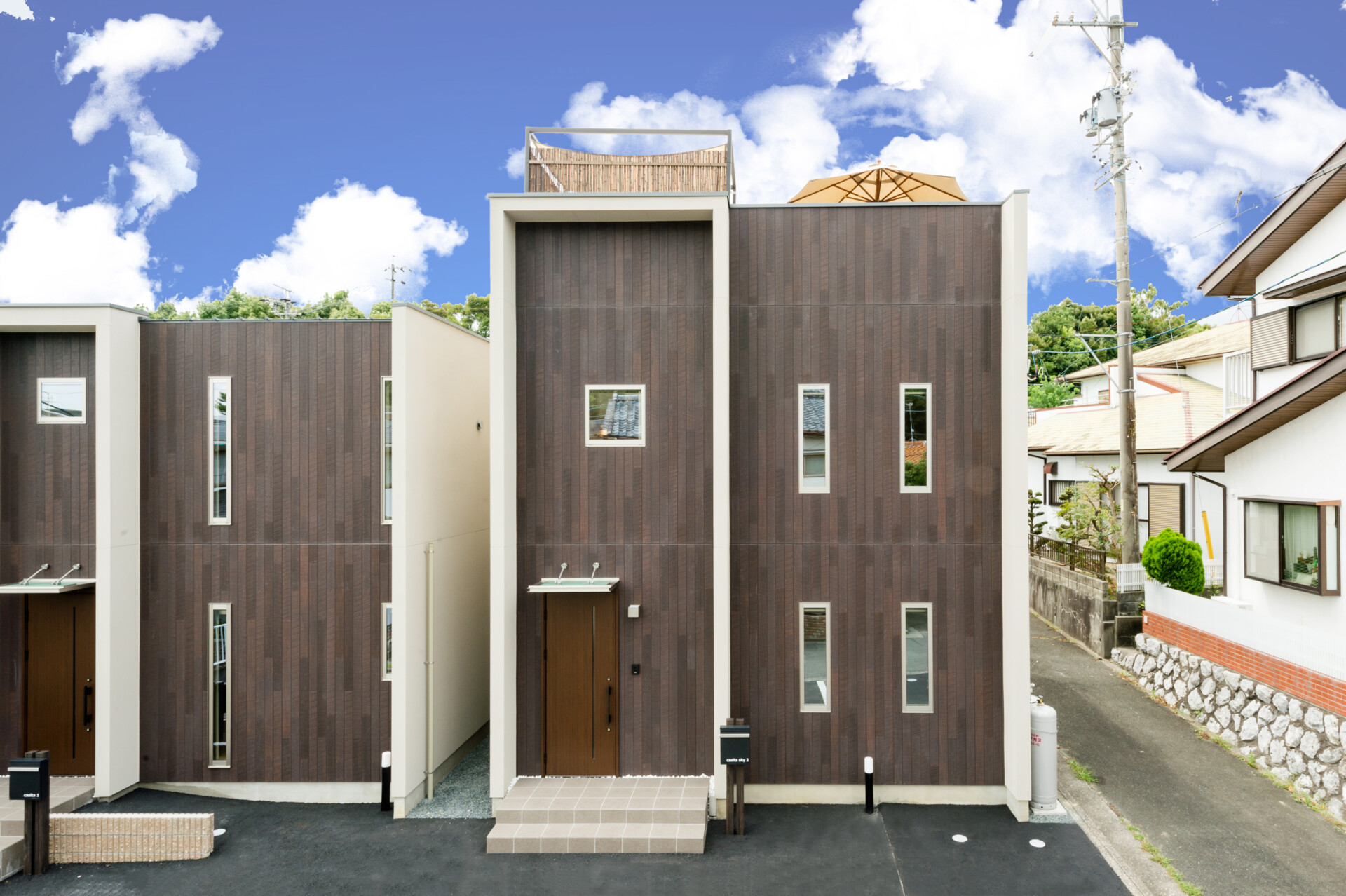 屋根はコンクリートですが、壁との間にスリットがあり少し浮遊感を感じさせ、軽やか。