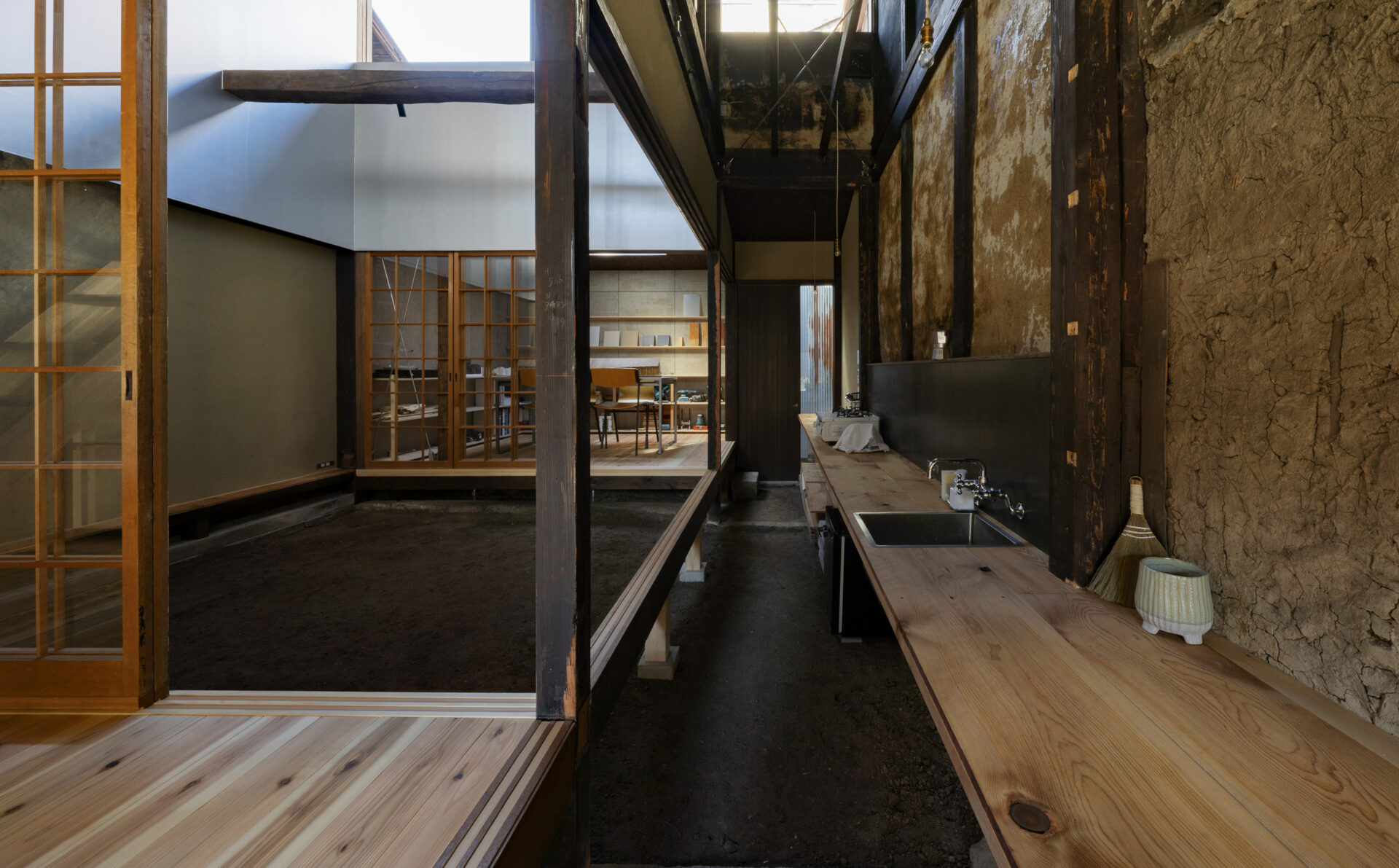 間取りが固定されがちなワンフロアの住まいにおいて、ギャラリーは室内にも移ろう風景をもたらす余地を与えてくれる存在となっています。