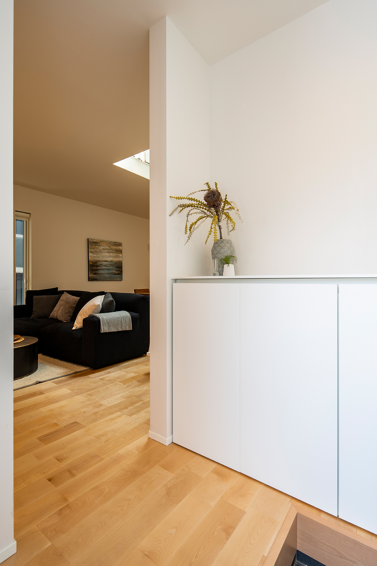 壁面の木は、色味を少し抑えてあることから、空間が広がりすぎることを抑制し、落ち着きとまとまりがある空間を演出しています。典型的でありながらも、非常に洗礼された、優しさのある北欧スタイルであると感じます。