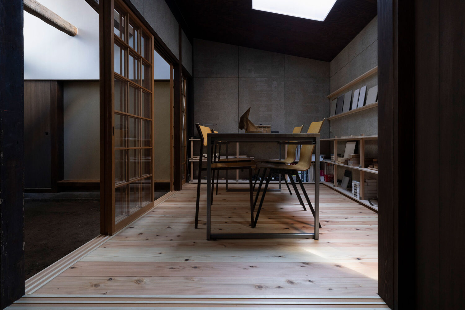 「広重の芸術と伝統を表現する伝統的で落ち着きのある外観」をコンセプトとして設計され、平屋建ての切妻の屋根を採用し、内装にも地元の材を使い、壁は烏山和紙、床は芦野石でつくられており、日本ならではの伝統家屋らしさを感じます。隈研吾は、この作品により林野庁長官賞や村野藤吾賞などを受賞しています。