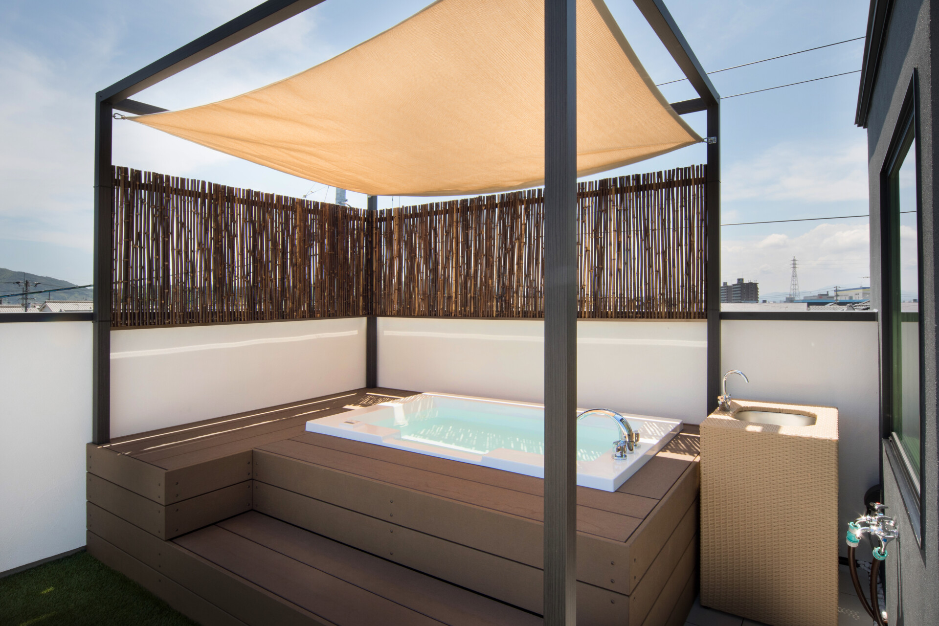 リビングとスリーピングエリアには大きな窓を設け、自然光をふんだんに取り入れることで、より広々とした空間を演出しています。