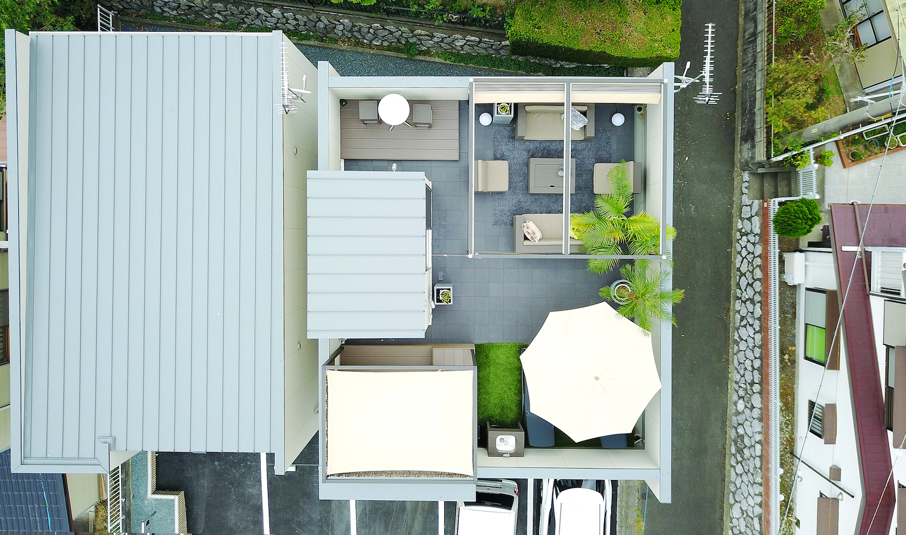 地上3階建ての建築は、主に2種類の空間によって構成されています。