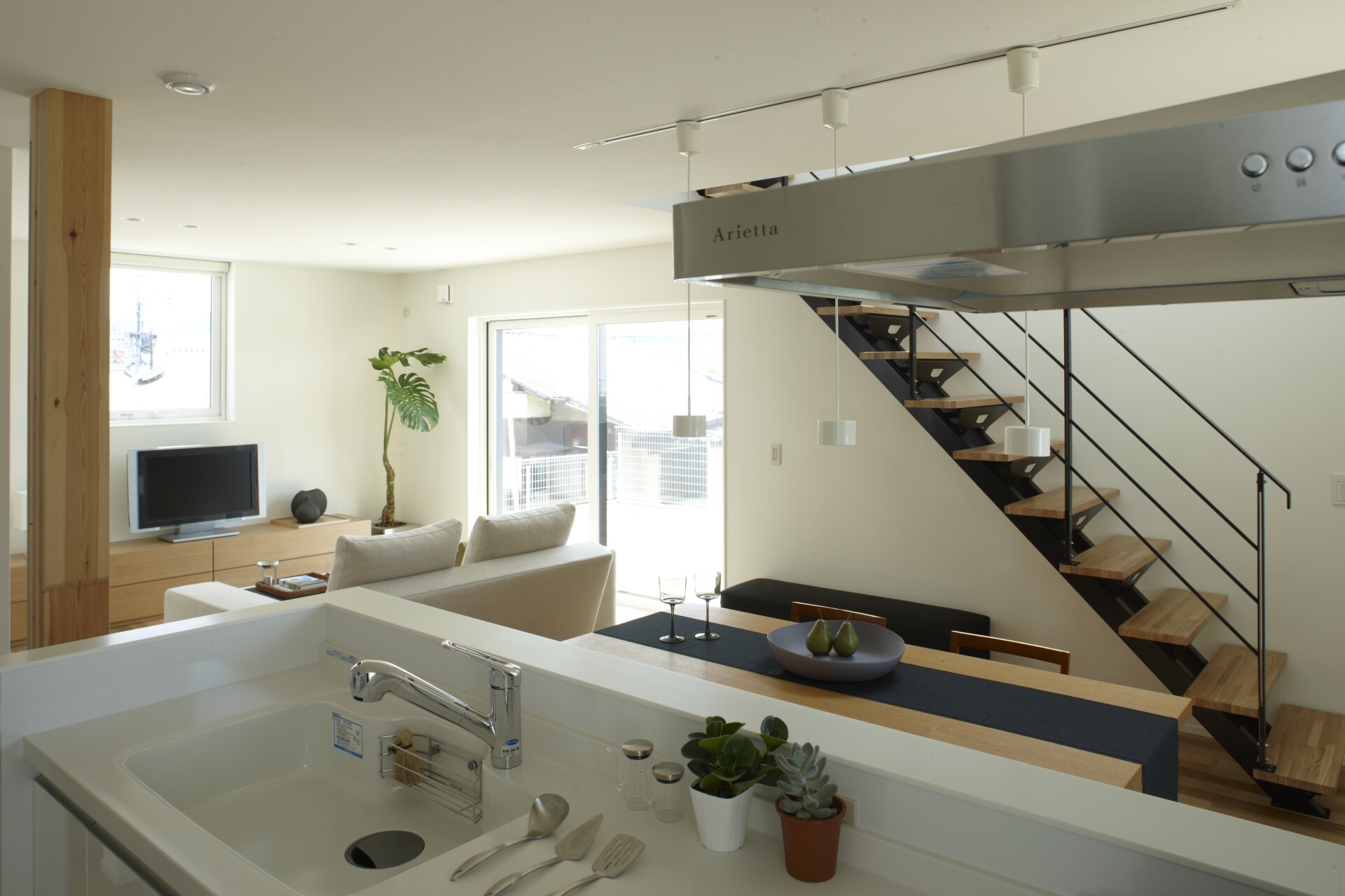 キッチンは、自然と人が集う、全長3mの特大アイランドキッチンを完備。