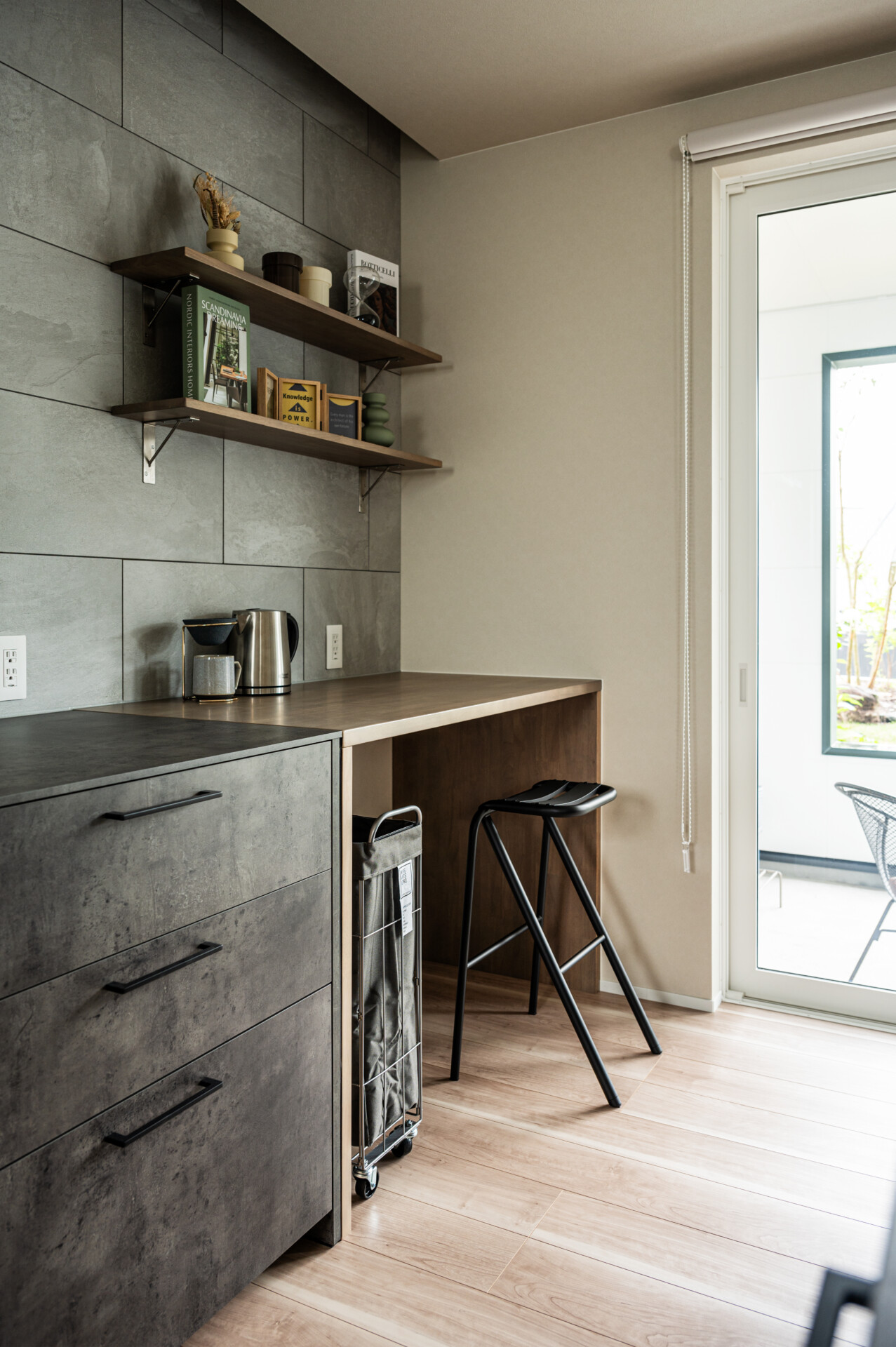 また、側壁に施されたスリット窓は、ガラスの幅15cmとコンパクトでありながら、長く伸びる太陽光を楽しめます。側面はスリット窓のみ採用されているため、防犯性に優れており、安心して過ごせます。さらに内壁には、オリジナルの真っ白な壁紙を採用。自然光や照明の光を反射するため、空間全体を明るく見せる効果があります。