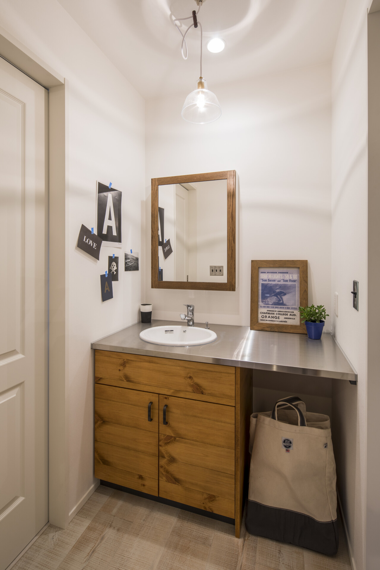そしてLDKの隣に設けられた洗面スペースは、タイルや照明、コンクリート風カウンターが、まるでホテルのような仕上がりです。
