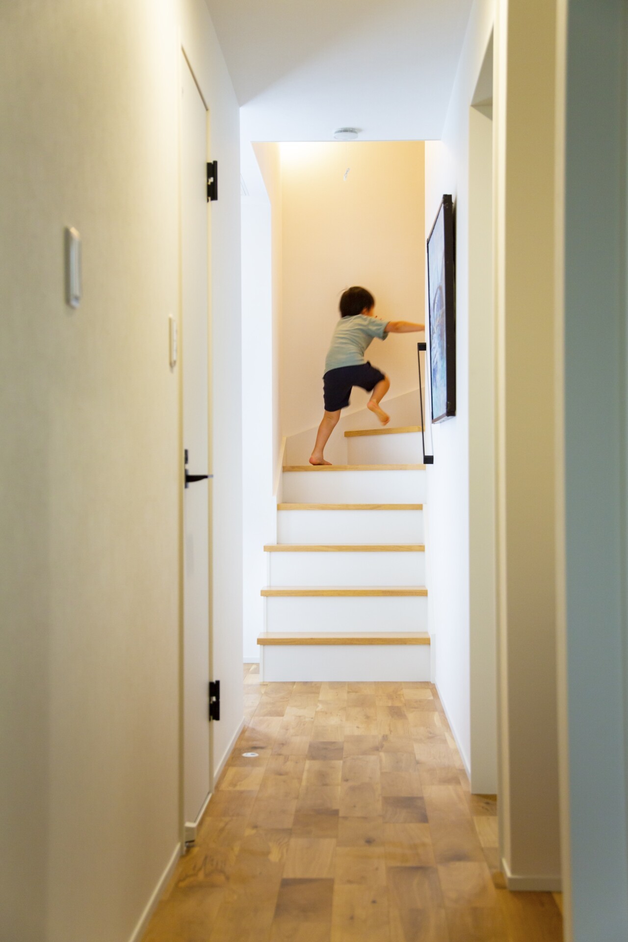 特徴は、大きな吹き抜けが設けられていることです。吹き抜けを取り入れることによって敷地が狭い住まいでも、空間を広く演出することができ、開放感のある印象を作っています。