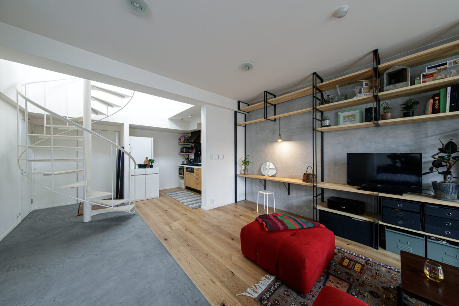 1階はオープンなLDK空間に。上から注ぐ光で明るく開放的な雰囲気となっています。