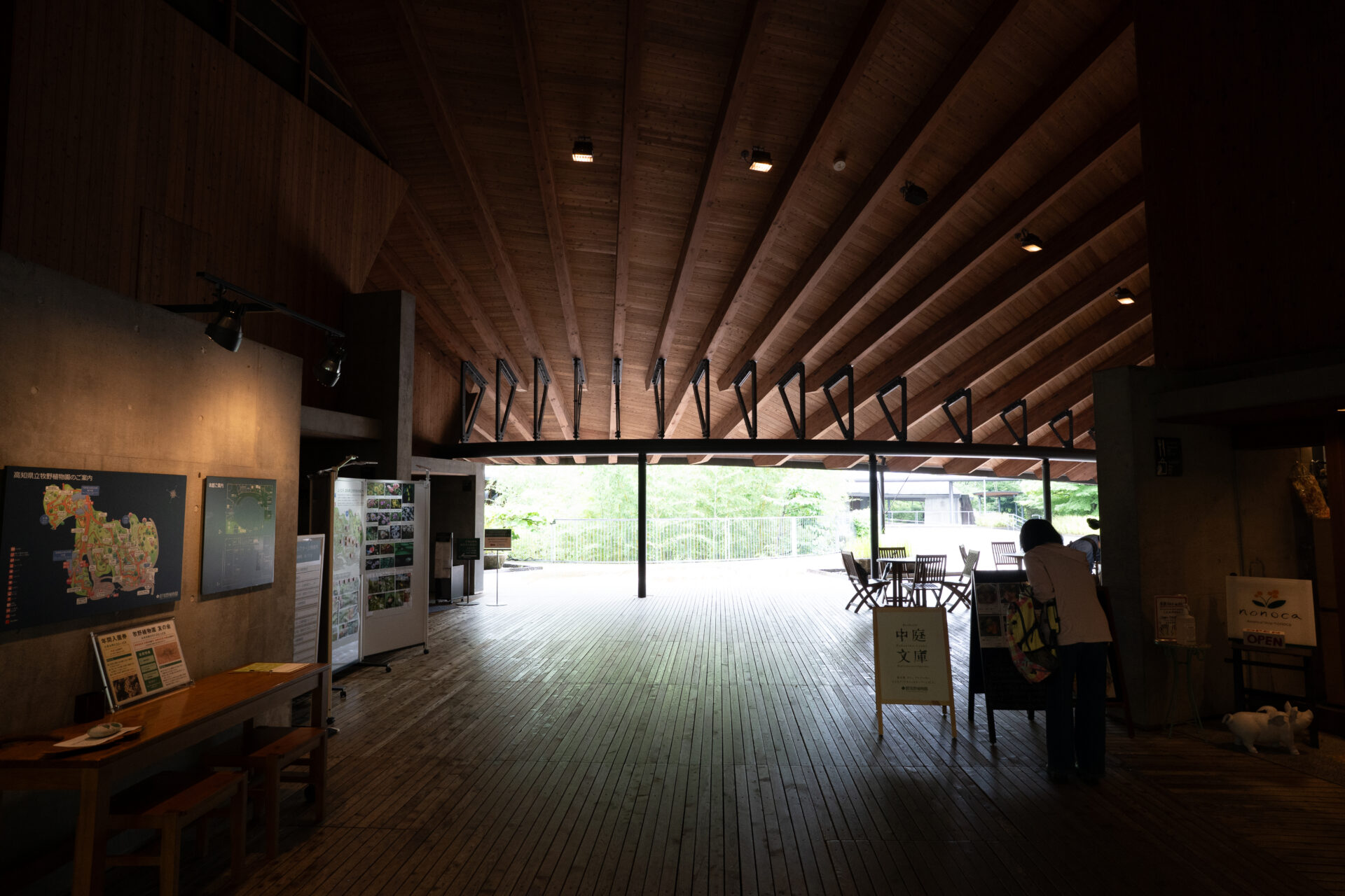 牧野富太郎記念館の最も際立った特徴は、構造体そのものをデザインとして見せる、力強い木造建築です。内藤廣は、日本の伝統的な木組みの技術を、現代の巨大な建築スケールで再解釈しました。