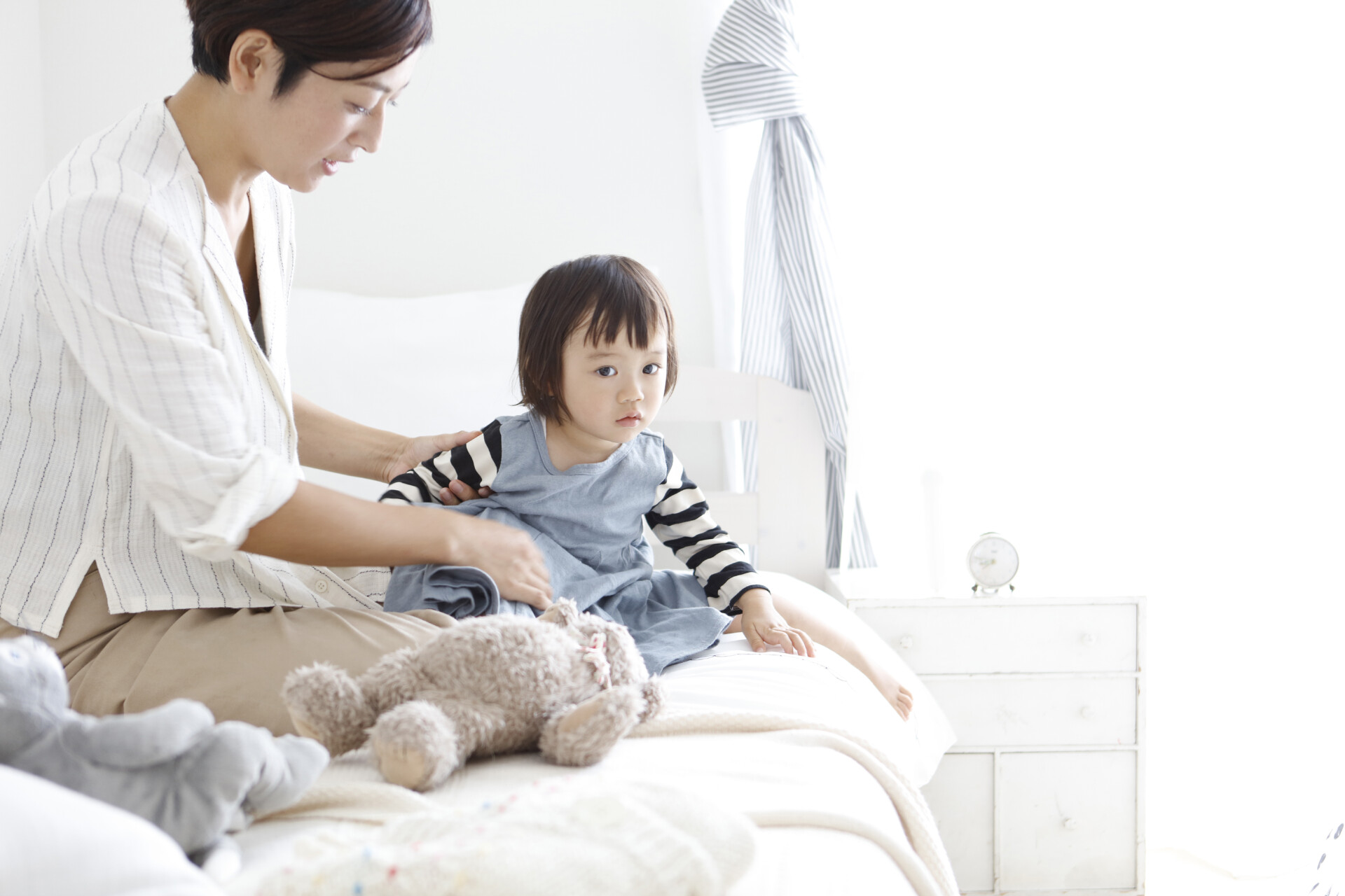 寝室は1階に配置され、南北の開口から柔らかな自然光が差し込みます。階高を高くとることで、明るすぎず暗すぎない中間的な明度が生まれ、穏やかな時間が流れます。一方、2階のバルコニーは地盤面から4,565mmの高さにあり、公園の緑を見下ろしながらも外からの視線を遮断。都市にありながらも、外と内の境界が曖昧な心地よさを感じられる設計です。