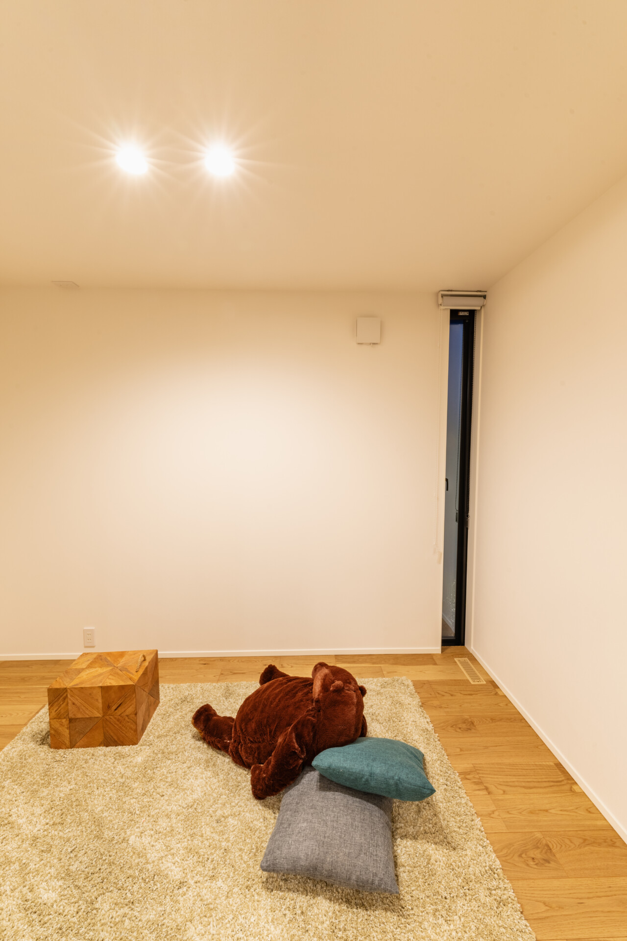 玄関はアプローチから一段下がるように設けられています。この“沈み込み”によって生まれる下階は、最大4,400mmというゆとりある階高を持ち、ぼんやりとした暗がりに包まれた静謐な空間。