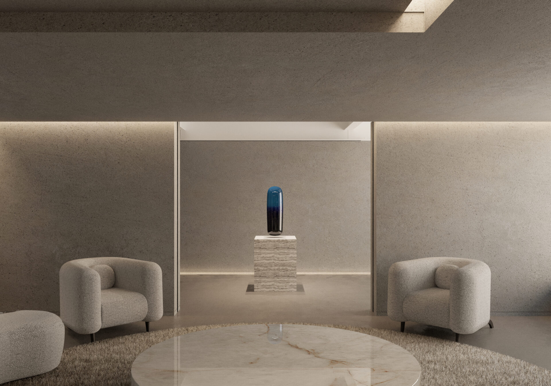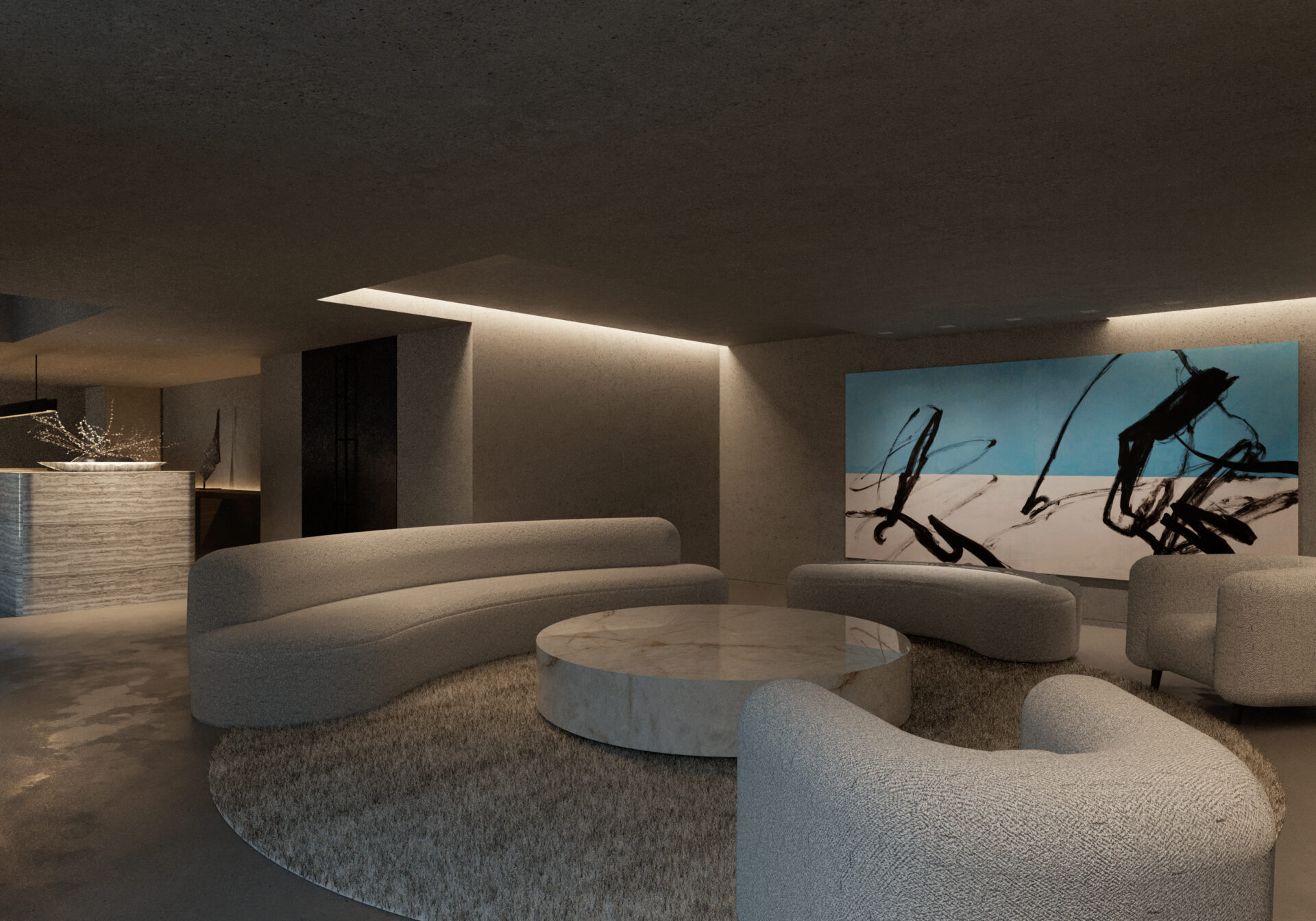 彼らが手がけたラウンジは、アート鑑賞の興奮や集中から一旦解放され、心静かに作品の余韻を味わうための静謐な場所として設計されました。展示空間の力強いコンクリートの質感とは対照的に、ラウンジには柔らかな素材や温かみのある照明が採用され、居心地の良い「間」が創出されています。このラウンジスペースは、単なる休憩所ではなく、鑑賞者が三原研氏の作品や森山善之氏の建築から受け取ったインスピレーションを内省し、より深く「ア・ライトハウス・カナタ」の哲学に触れるための重要なトランジションエリアとなっています。このように、新ギャラリーは、建築(森山善之)、インテリア(I IN)、アートという異なるレイヤーの創造性が重なり合う、多層的な文化体験を提供する場として機能しています。