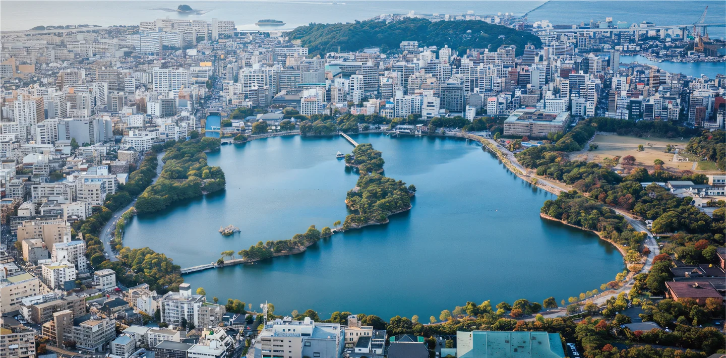 博多湾に続く入り江が福岡城の外濠へ発展し、やがて市民に開かれた大濠公園となりました。
