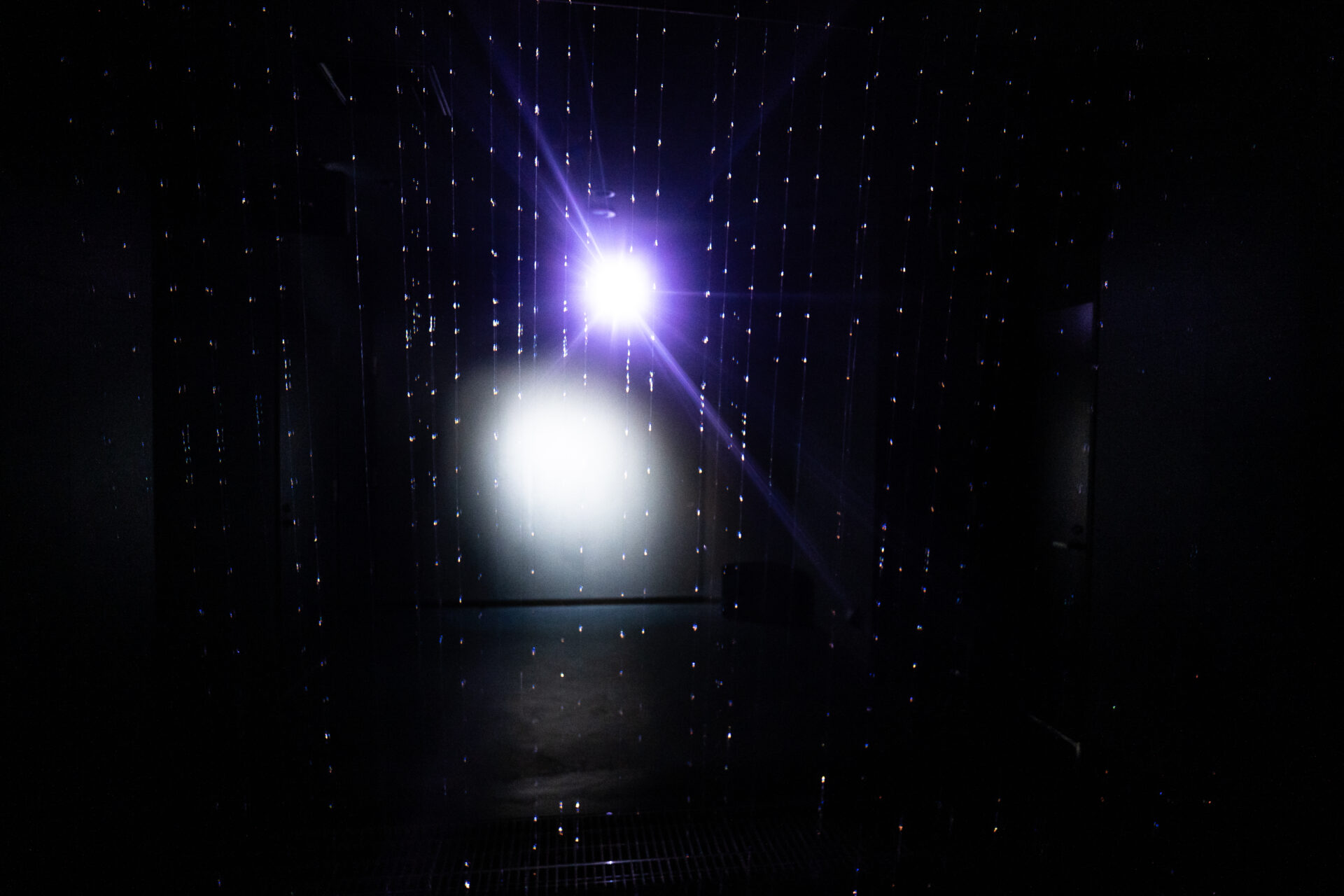 空中に浮かぶように見える水の玉と触れ合えるアート空間で、演出は美術館周辺の潮の満ち引きや波の高さに応じて、色や動きがゆるやかに変化します。海という巨大な不安定要素を、室内の繊細な現象として知覚し直す部屋です。