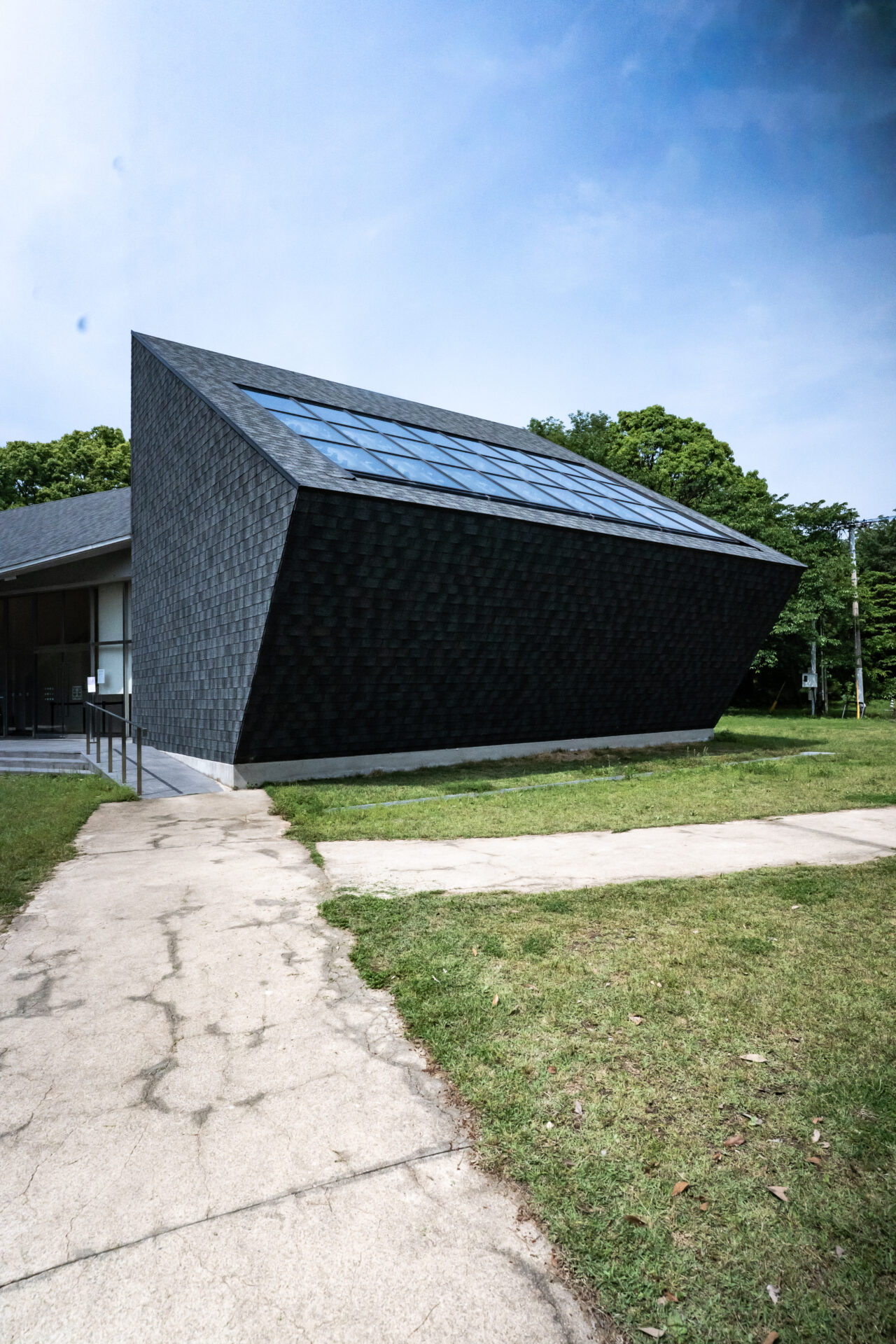建築的特徴として象徴的なのが、「太陽」を主題にする展示室を太陽の軌道に合わせて東西軸に配置していることです。さらに屋根勾配も、年間を通して太陽の位置を最も認識しやすい角度が検討されています。つまり単なる採光計画ではなく、“太陽の動きを読む装置”として屋根が機能する設計です。