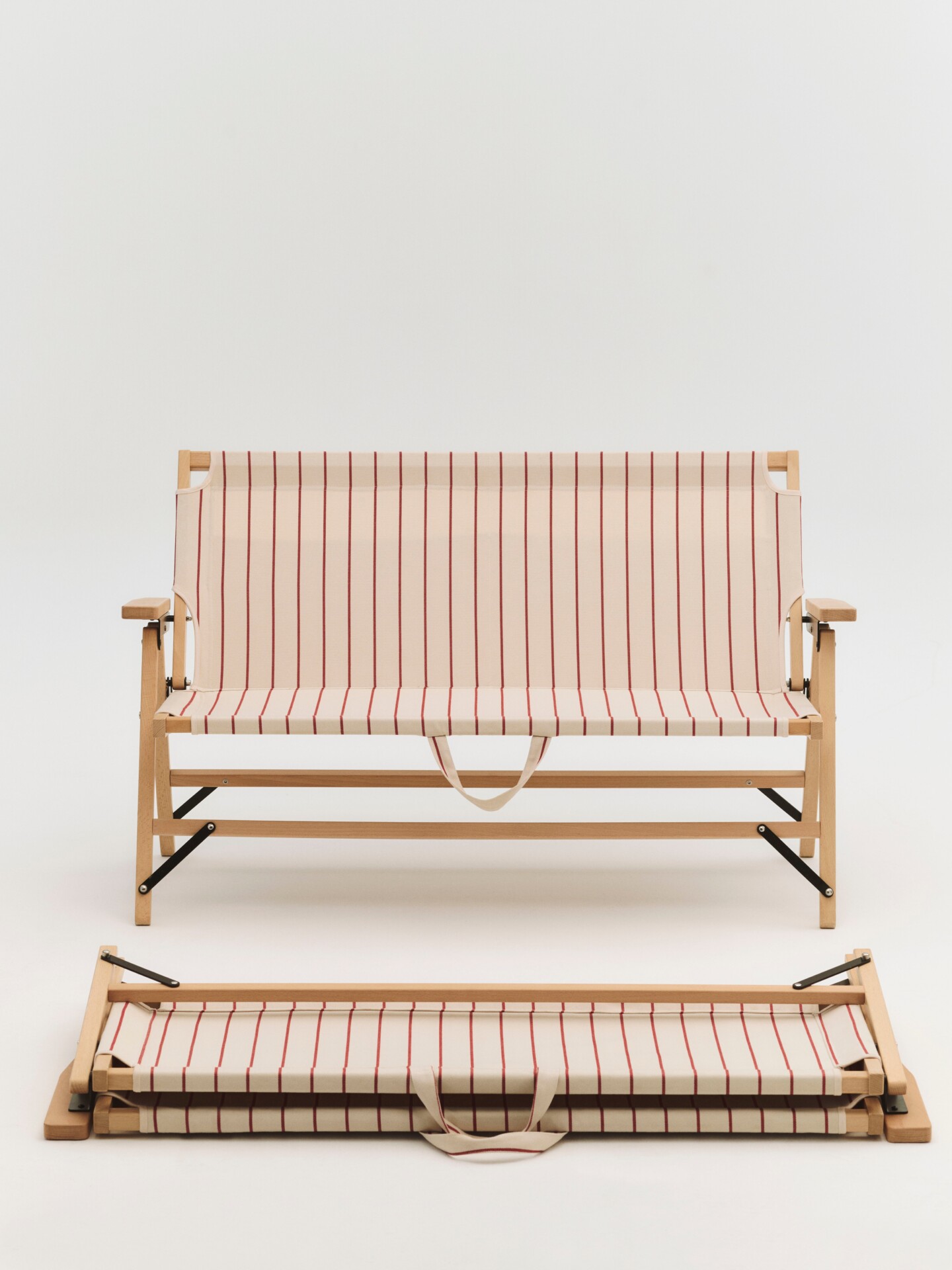 軽量なビーチ材フレームとストライプ柄の再生ポリエステルシートを組み合わせた「Outdoor Market Folding Chair(44,000円)」などの折りたたみ家具シリーズは、このコレクションの核となるアイテムです。