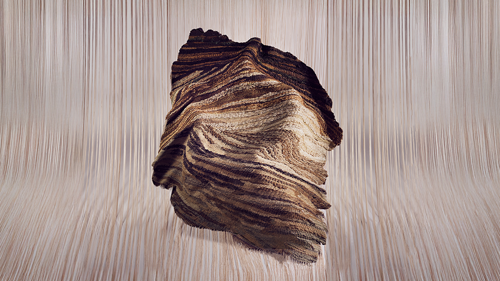 ごつごつ、きらきら、ざらざら——。地層と鉱石、土が刻んだ時間の質感を、織物で表す。