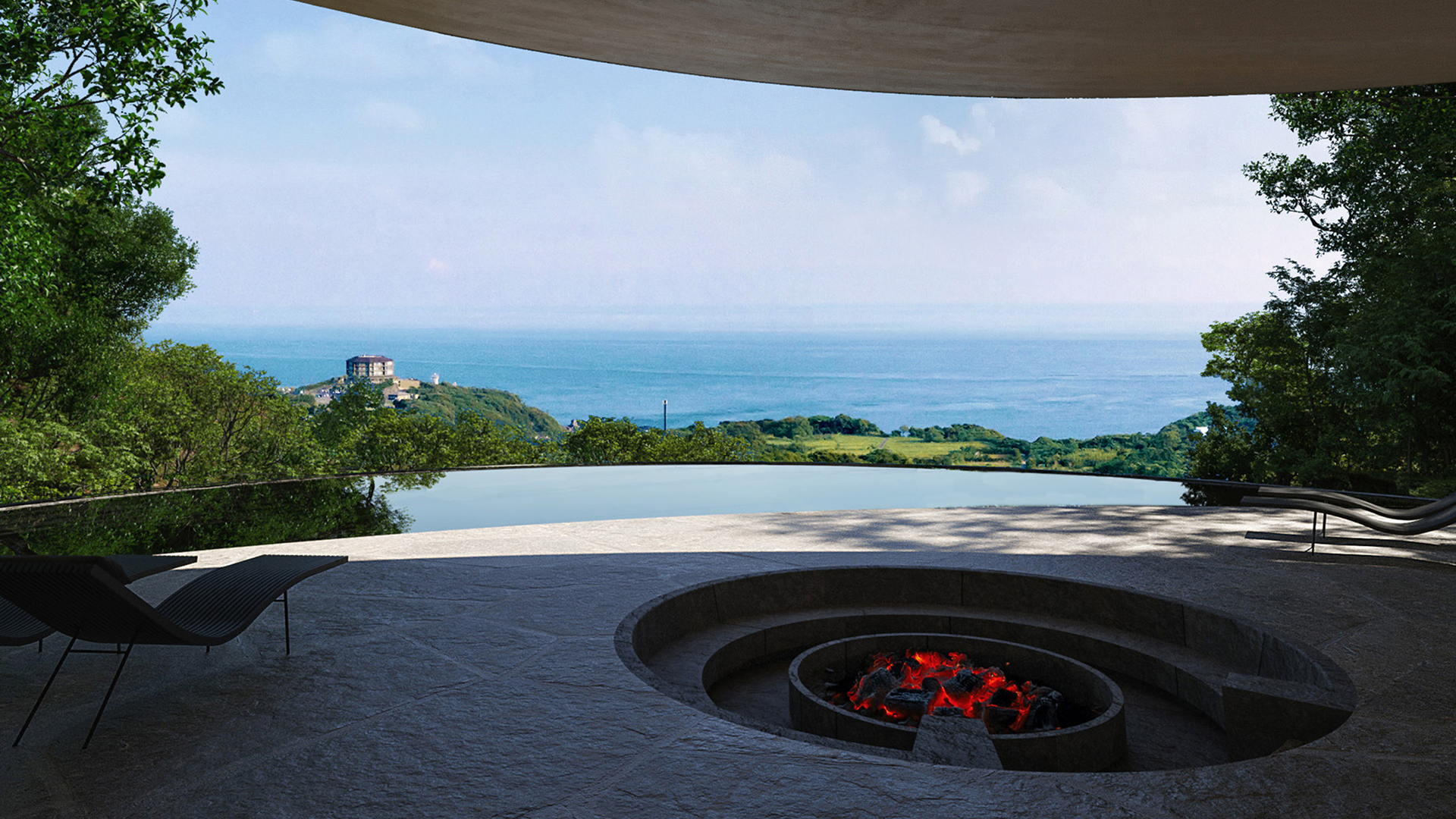 屋久島らしい“雨”を、滞在価値へと反転させるテーマ設定です。音・気配・時間の変化といった非視覚的な要素を、建築体験の核に据えています。自然と建築の境界を「線」ではなく「ゆらぎ」として扱う発想が際立ちます。
