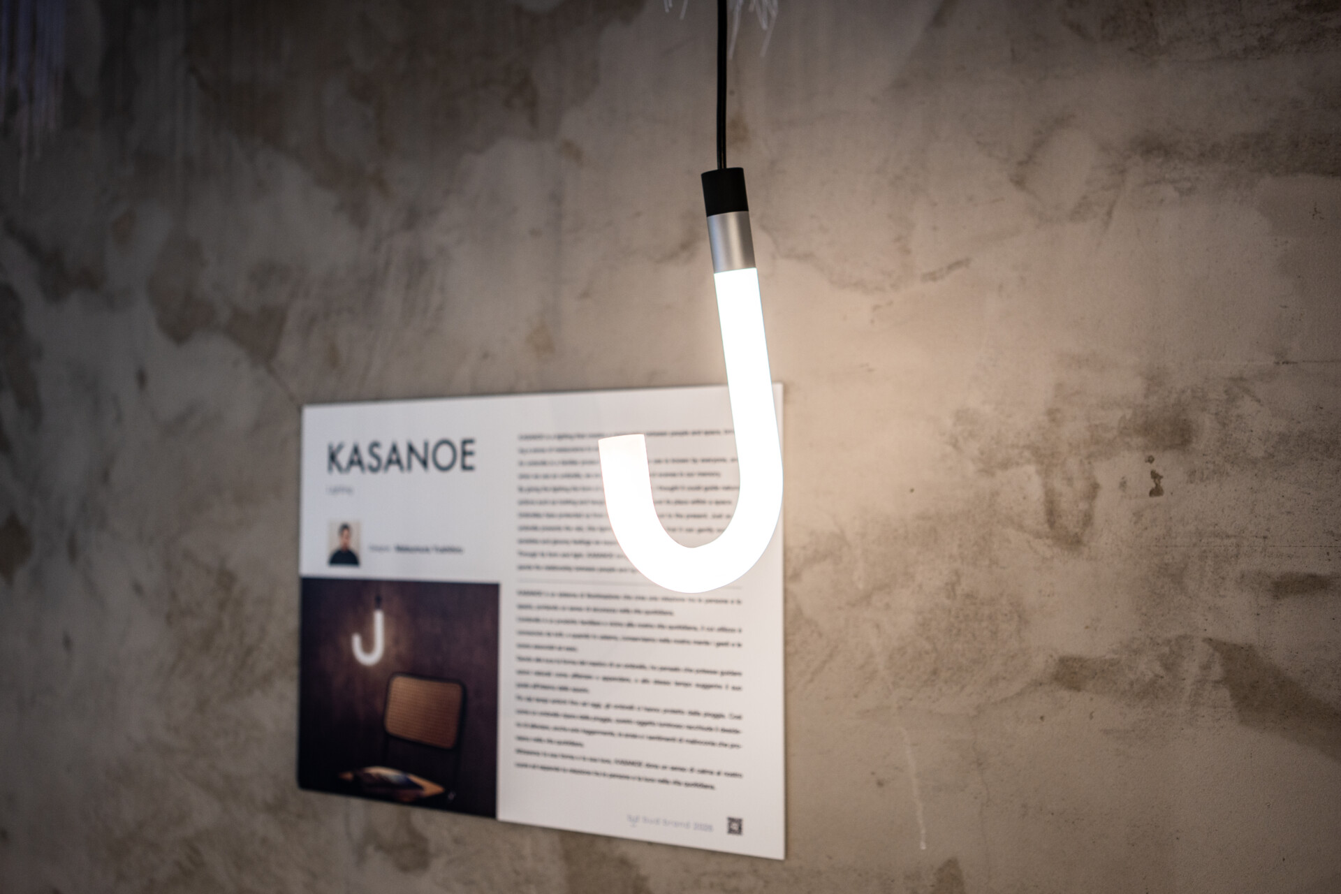 誰もが幼い頃から手に取り、雨の日の外出を支えてくれた「傘」。その柄(え)のかたちを照明に与えることで、人と空間の新しい関わりを生み出そうとしたのが、松村佳宙さんの「KASANOE」です。